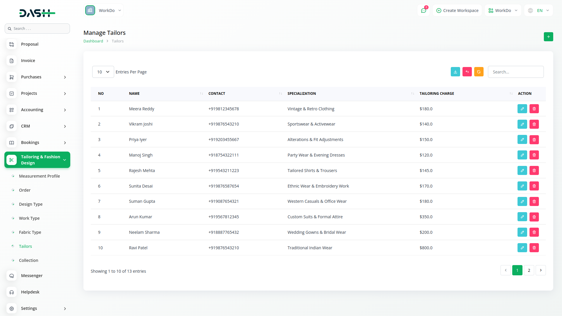 The Tailor & Fashion Design Add-on in Dash SaaS is designed to help tailoring businesses, boutiques, and fashion designers manage their operations efficiently. From taking accurate measurements to handling fabric inventory and assigning work to tailors, this module provides a structured system to keep everything in check. Whether you’re crafting custom outfits or working on client-specific designs, this add-on helps streamline operations, reduce manual errors, and improve overall productivity. With a centralized system for measurements, orders, designs, and fabrics, you can focus on creativity while ensuring a smooth workflow.