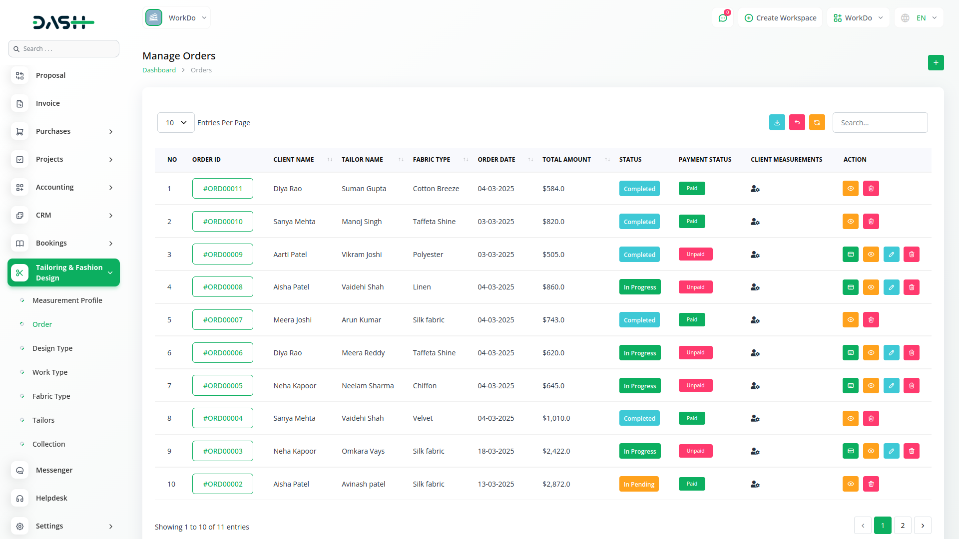 Easily manage tailoring and fashion design projects with advanced tracking,order customization and smooth workflow integration.