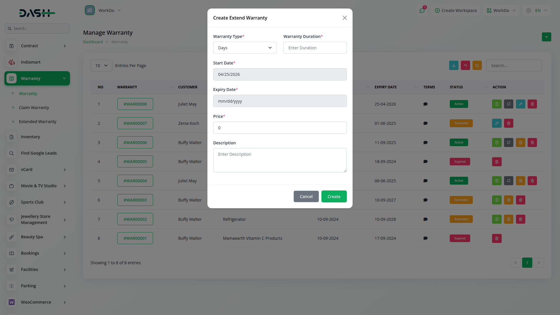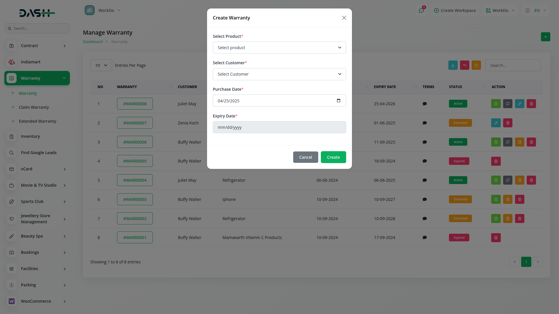Introducing the Warranty Management Add-on for Dash SaaS – a comprehensive solution to manage product warranties efficiently. Whether you're selling electronics, appliances, or any warrantable goods, this module ensures every warranty detail is meticulously recorded and easily accessible.
